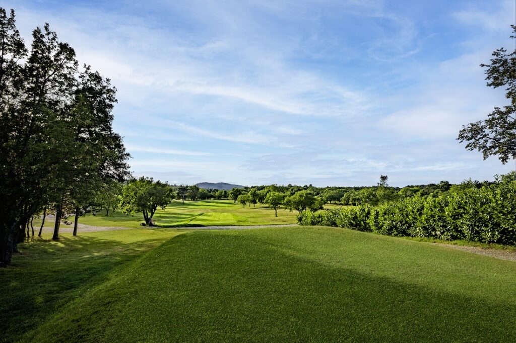 Här är det på många hål barmhärtigt brett för en vinglig golfsving. Inte så att hålen i sig är så breda, men det finns inte sällan ett annat hål man kan låna när man slår lite snett och bara en gång hamnar bollen så illa i tjock ruff att vi inte hittar den. Underlaget är utmärkt, fast och fint, och de små greenerna både snabba och jämna.