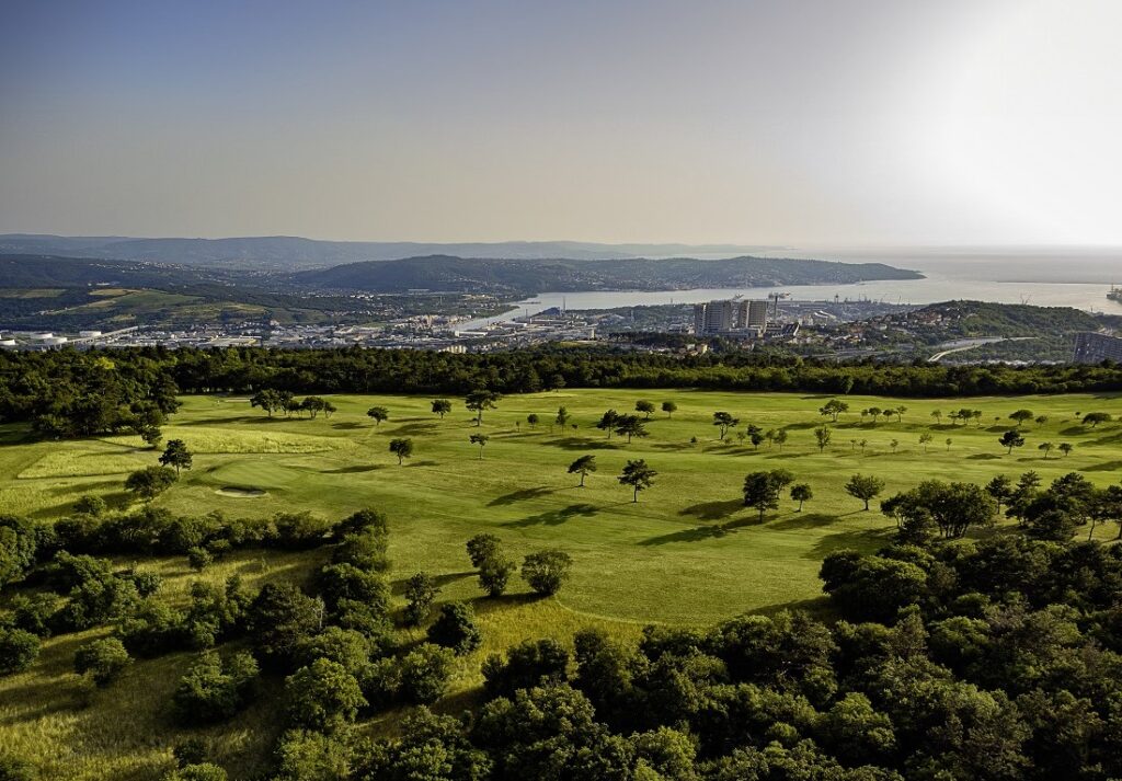 Efter knappt 20 minuter i buss, sista biten längs en väg med magnifika vyer ned över havet och Trieste långt där nere, kommer vi till Golf Club Trieste, regionens äldsta golfbana grundad redan 1954 av brittiska och amerikanska medlemmar från den allierade militäradministrationen. Banan är vackert belägen på det som kallas karst, ett kargt underlag med kalkstenshöjder, håligheter, sprickor och jordbrist, vilket ger banan dess speciella natur och dramatiska form.